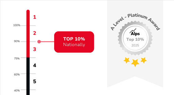 Alps Award - '2025 Alps Certificate of Outstanding Progress' placing us in the top 10% of schools and colleges nationally for our A Level results.